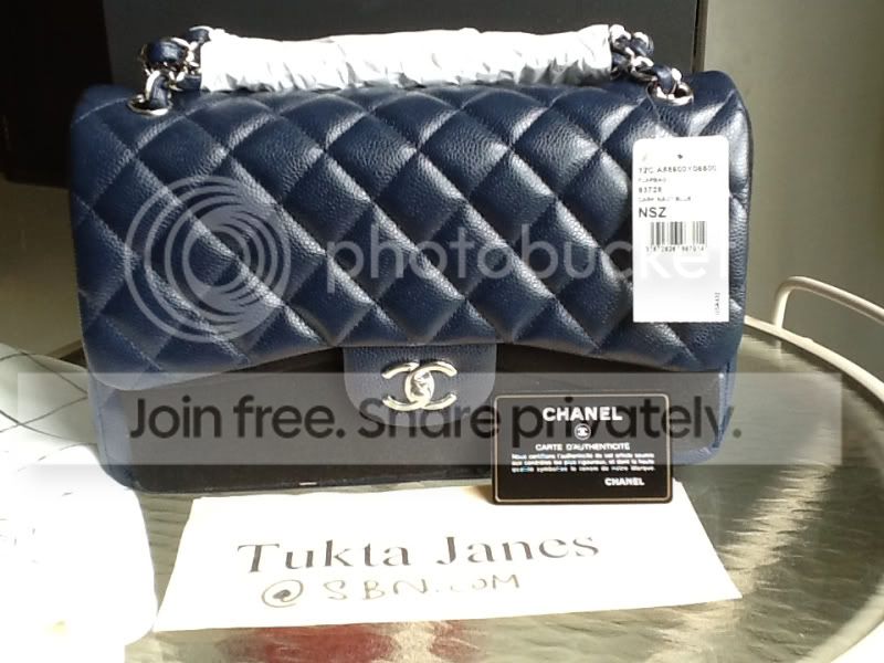 ใบที่ห้า Jumbo Navy Blue 12C Caviar SHW ราคา 155000 บาท ใบนี้ได้จากอเมริกา ราคาอาจสูงนิดนึง ป้ายราคา รหัสกระเป๋ายังติดอยู่ที่กระเป๋าเลยนะคะ ใบนี้ไม่มีกล่องนะคะ