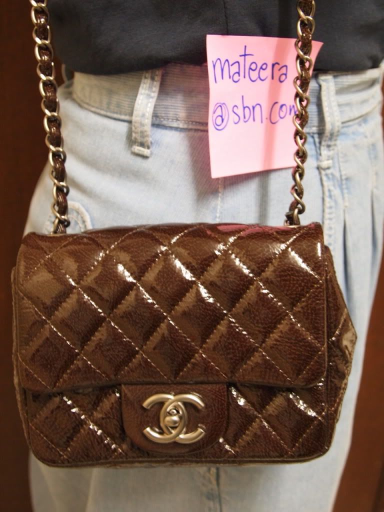 กระเป๋า USED CHANEL MINI, PATENT (หนังแก้ว) สีน้ำตาลอมแดง ขนาด 7นิ้ว
