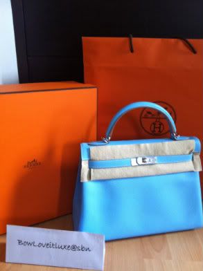 New Kelly 32 Blue Celest Epsom stamp O @ Sold