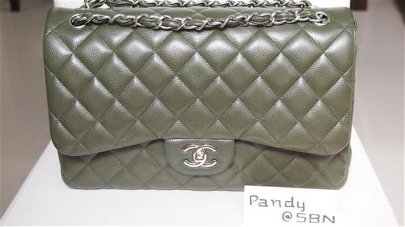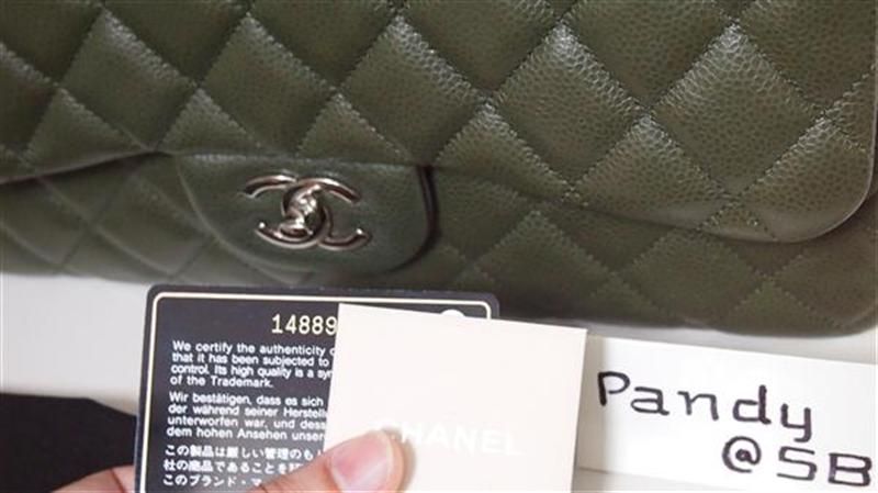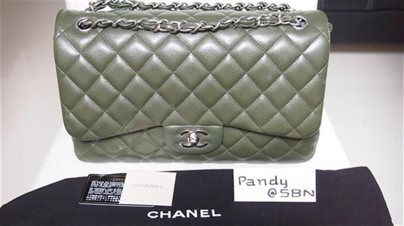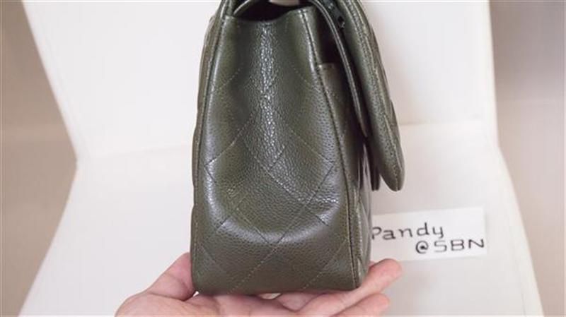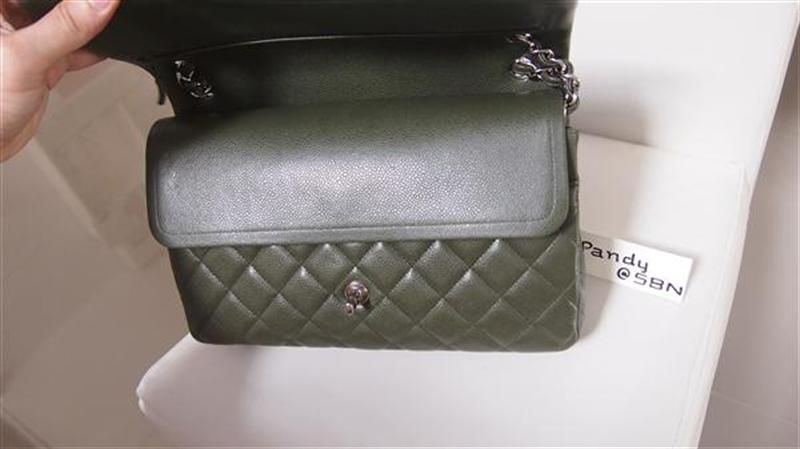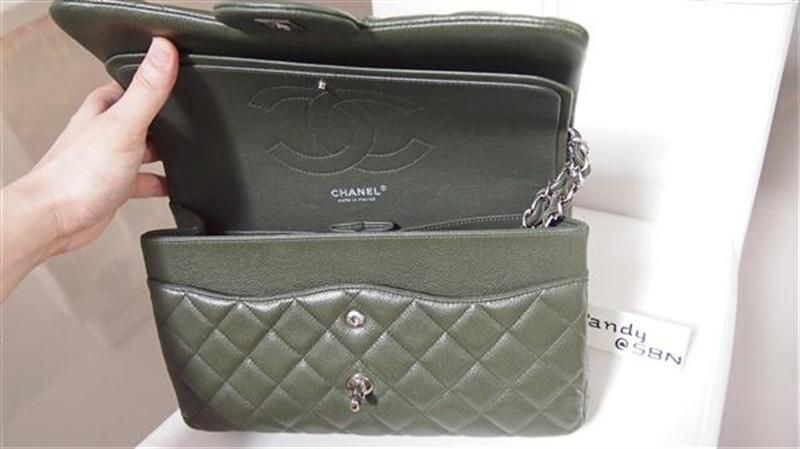 ชิ้นที่ 4 Chanel Jumbo green olive caviar double flap โซ่เงินสีเขียวหาได้ยากยิ่ง แฟนชาแนลห้ามพลาดเด็ดขาด