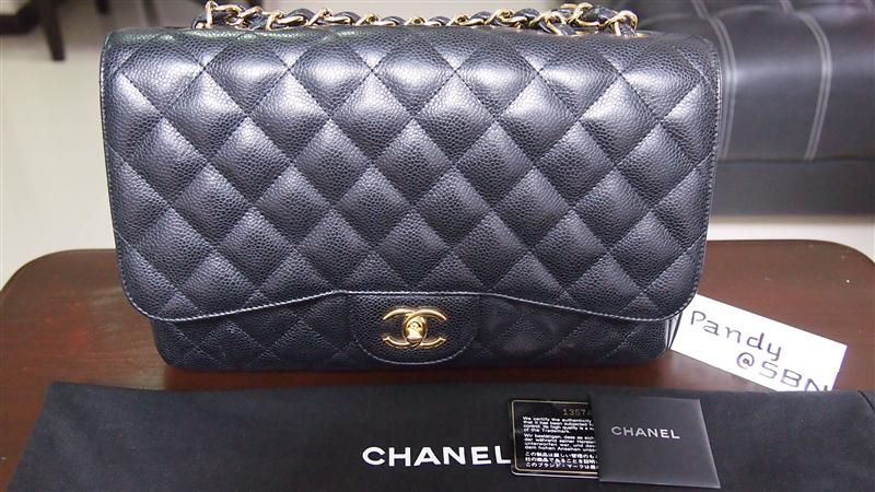 ชิ้นที่ 2 Chanel Jumbo caviar single flap สีดำ โซ่ทอง สภาพดีคะทรงยังเปะ ฮาร์ดแวร์ ยัง เงางามวิ้งๆ มุมไม่มีถลอก โดยรวมยังสวยมากๆ