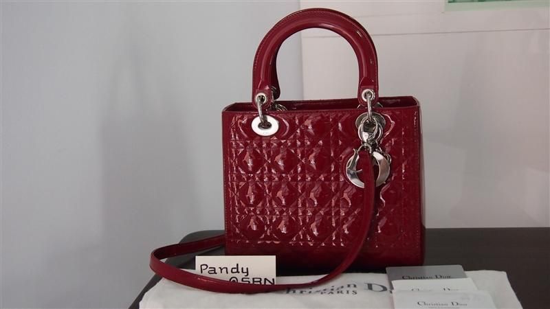 ชิ้นที่ 3 Lady Dior สีแดง หนังแก้ว อะไหล่เงิน สภาพดีมากๆ คะ สติกเกอร์ตรงฮาร์ดแวร์ยังไม่เอาออกเลย ไม่มีรอยขูดขีด รอยดูดสีนะคะ
