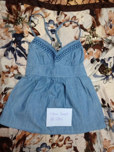 Abercrombie&Fitch Top Size XS Uk 8 ตัวนี้ผ้าจะออกคล้ายยีนส์นิดๆแต่นิ่มกว่ามาก พร้อมเปิดด้านหลัง จะใส่แบบมีเสื้อตัวในหรือว่าใส่ กับ Bikini ตอนไปทะเลก็ไม่ว่ากันนะคะ >_<