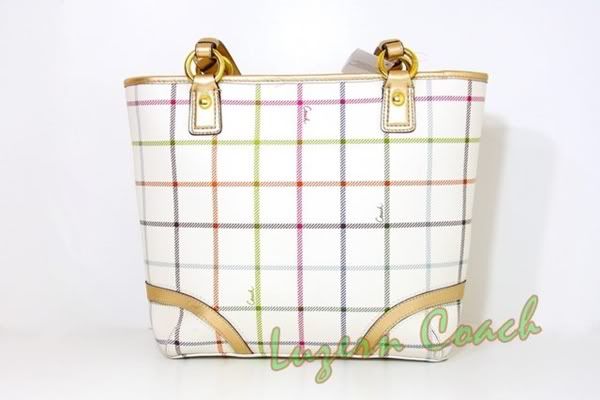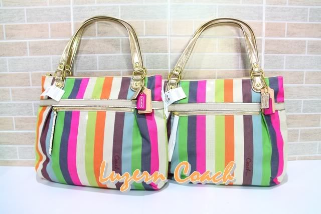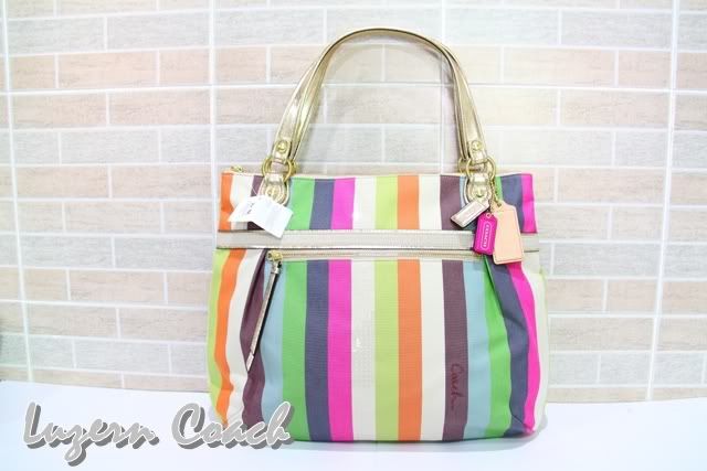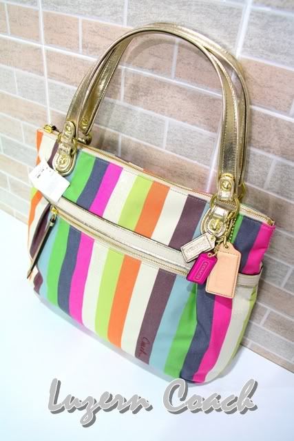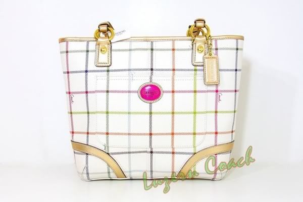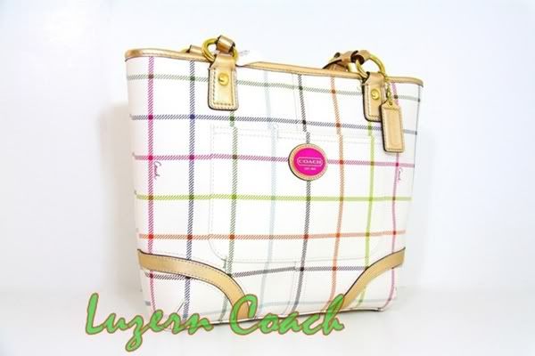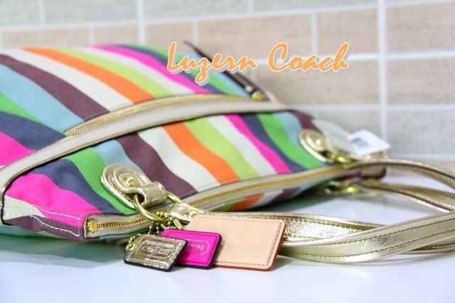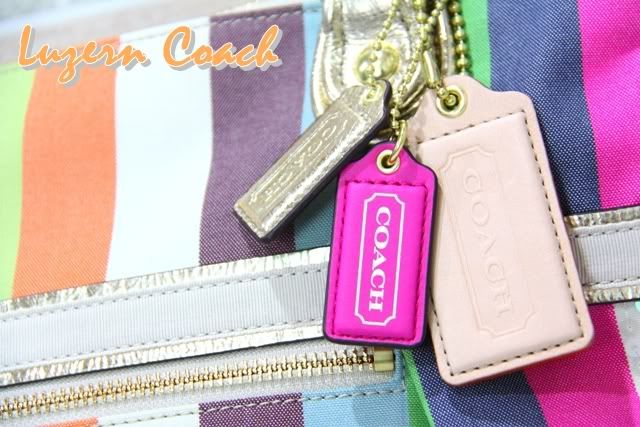 - สีสวยน่ารักมากคะ เก๋ตรงลายสีสัน สีเขียว ส้ม ชมพู ฟ้าตัดกันเป็นลายสก็อต และมีคำว่า "COACH"