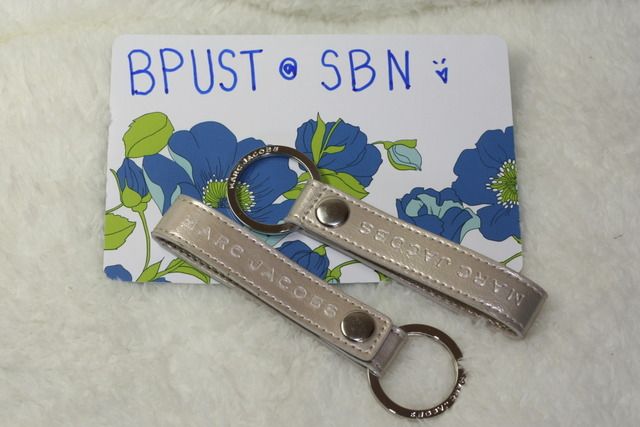 MARC BY MARCH JACOB KEY FOB หนังสีครีมทอง engraved "MARC JACOB"