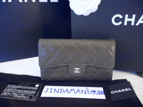 CHANEL WALLET CAVIER SHWสี dark grey สวยจริงจังไม่เปื้อนง่ายกว่าสีอ่อน แถมทนทานเพราะหนัง cavier halo 168xxxx อุปกรณ์ครบ กล่อง การ์ด ดอกคาเมเลีย ถุงกระดาษ ribbon ผ้าสักกะหลาดห่อกระเป๋า ครบประหนึ่งไปซื้อเองจากปารีสโดยไม่ต้องเหนื่อย ขอขายที่ 28,900 บาท