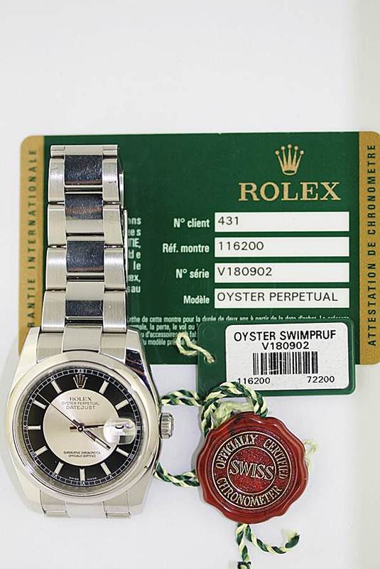 Rolex Mens Datejust 116200 Stainless Steel on Oyster bracelet. 36mm case size.