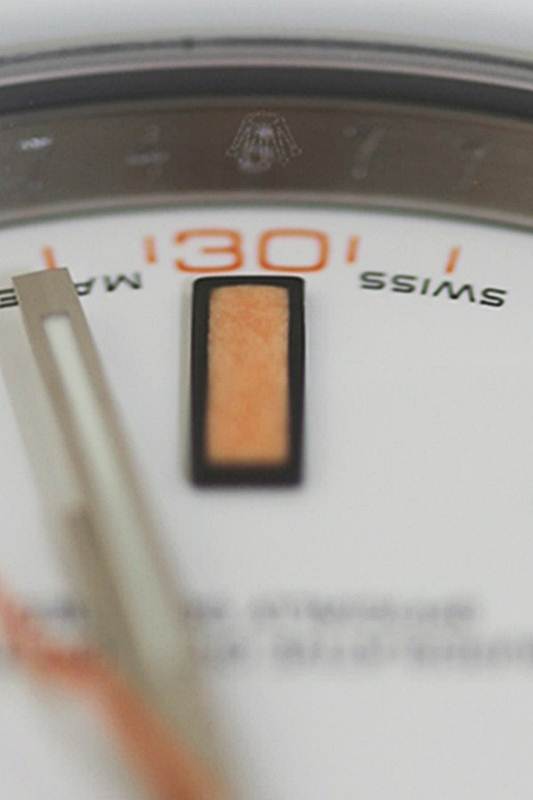 หน้าขาวเข็มส้ม รุ่นใหม่ล่าสุดสลักขอบ Rolexแล้ว ขนาด 40 มิล Man size ระบบ Automatic สาย Oyster ตึงๆ