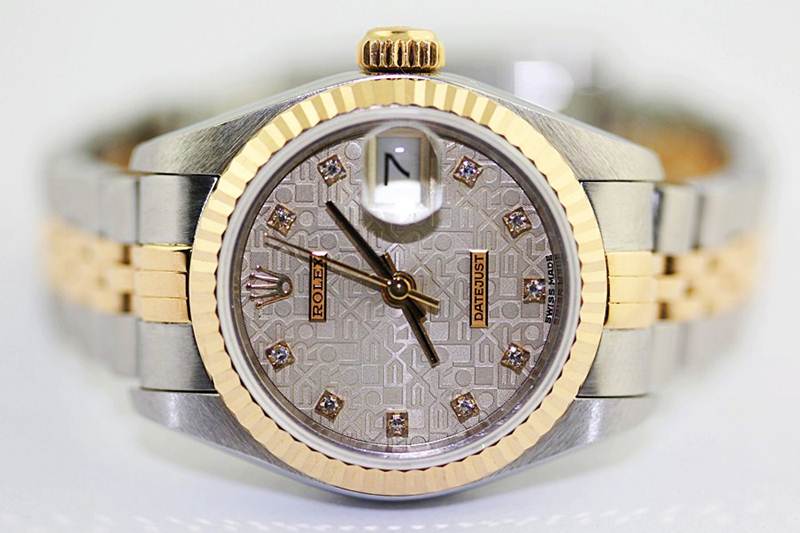 Pre-owned Rolex Lady Datejust in Stainless Steel and 18K gold with custom diamond hour markers.
