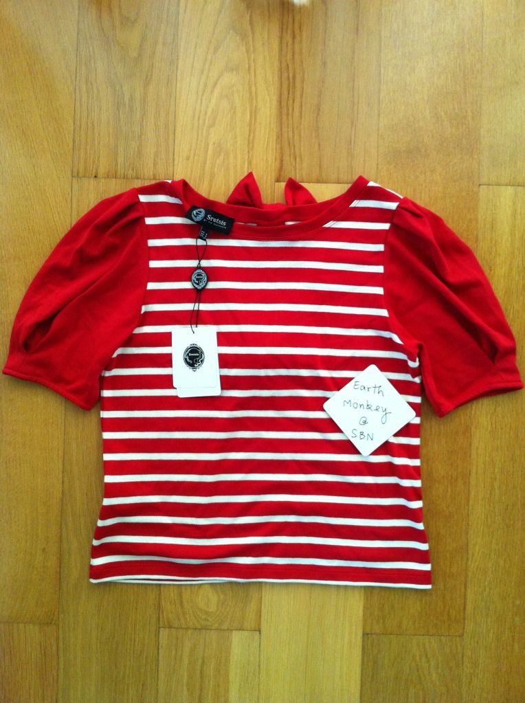 2.เสื้อแขนสั้นลายขวางสีแดง Miffy มีโบว์ด้านหลัง size us4 ขาย sold บาท