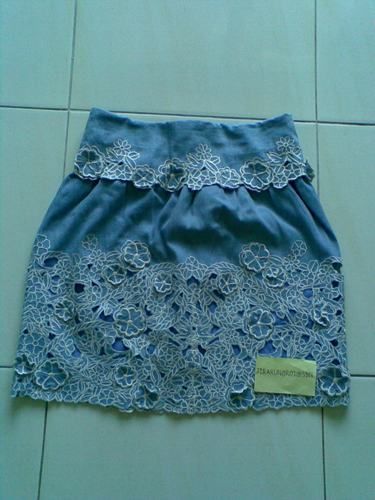 USED กระโปรงยีนส์ปักฉลุ size M ขาย 3700
