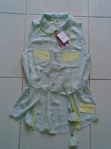 NEW เสื้อคอบัวมีเชือกผูกที่เอว สีเขียว size M ขาย 4000