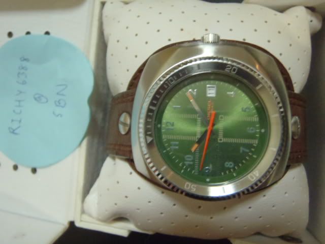 1. นาฬิกาข้อมือสุดเท่ห์ DIESEL Used like new ซื้อมาใช้งานไม่เกิน 10 ครั้ง เพราะมีนาฬิกาหลายเรือน สภาพใหม่ 85% รุ่นนี้ผลิตมาน้อยนะคะ ซื้อไปรับรองไม่ซ้ำใครแน่นอน หน้าปัทม์สีเขียวแมนสุดๆ สายหนังแท้ มีวันที่บอกด้วยนะคะ อุปกรณ์มีกล่อง คู่มือ (ตามรูปค่ะ) ตอนซื้อมาราคาเกือบ 8,000 บาท โทรมาวันนี้ลดเหลือเพียง 3,400 บาทเท่านี้ Brand นี้ สภาพนี้ ราคานี้ หาไม่ได้อีกแล้วนะคะ