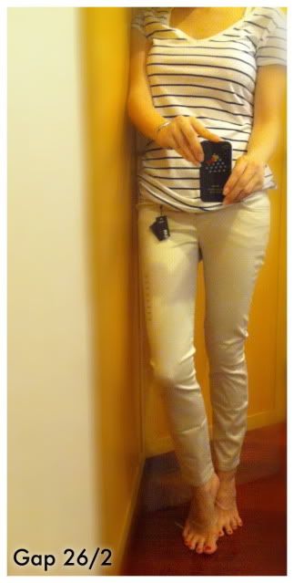 2.GAP-legging jean stretch กางเกงสกินนี่ ทรงสวย ผ้ายืดหยุ่นเนื้อดีมากๆ(ใส่สบายมาก) ของใหม่ป้ายห้อย ขาทรง crop อยู่แถวข้อเท้า สีครีมหรือ OFF WHITE ไซส์ 26 หรือ 2 ซื้อมาใส่ไม่ได้(ในรูปไม่ได้ติดกระดุม พอดีพุงใหญ่ แหะๆ)ราคาเต็ม 2490 "ขาย 590"
