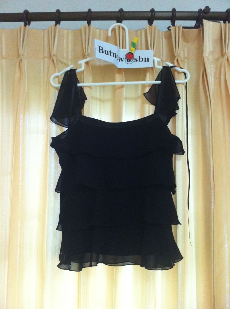 n8. เสื้อผ้าซีฟองระบายเป็นชั้นๆ มีซับใน ใส่ไม่บางค่ะ ของใหม่ ซื้อมาไม่ได้ใส่ลองให้แฟนดูแล้วถูกดุ ขอปล่อยแบบอยากให้ไปใส่กันที่ราคา 390 บาทค่ะ ขอบอกว่าตัวนี้ใส่แล้วเซ็กซี่ปนน่ารัก เพราะผ้าซีฟองดำ จะออกแนวซีทรู แต่เล่นโบว์เล็กๆที่หัวไหล่น่าร๊ากค่ะ>>;) วันนี้ลดไปอีกเหลือ 350 บาทค่ะ ลดก่อนอำลาเพราะขี้เกียจขายแล้วที่ 290 บาท