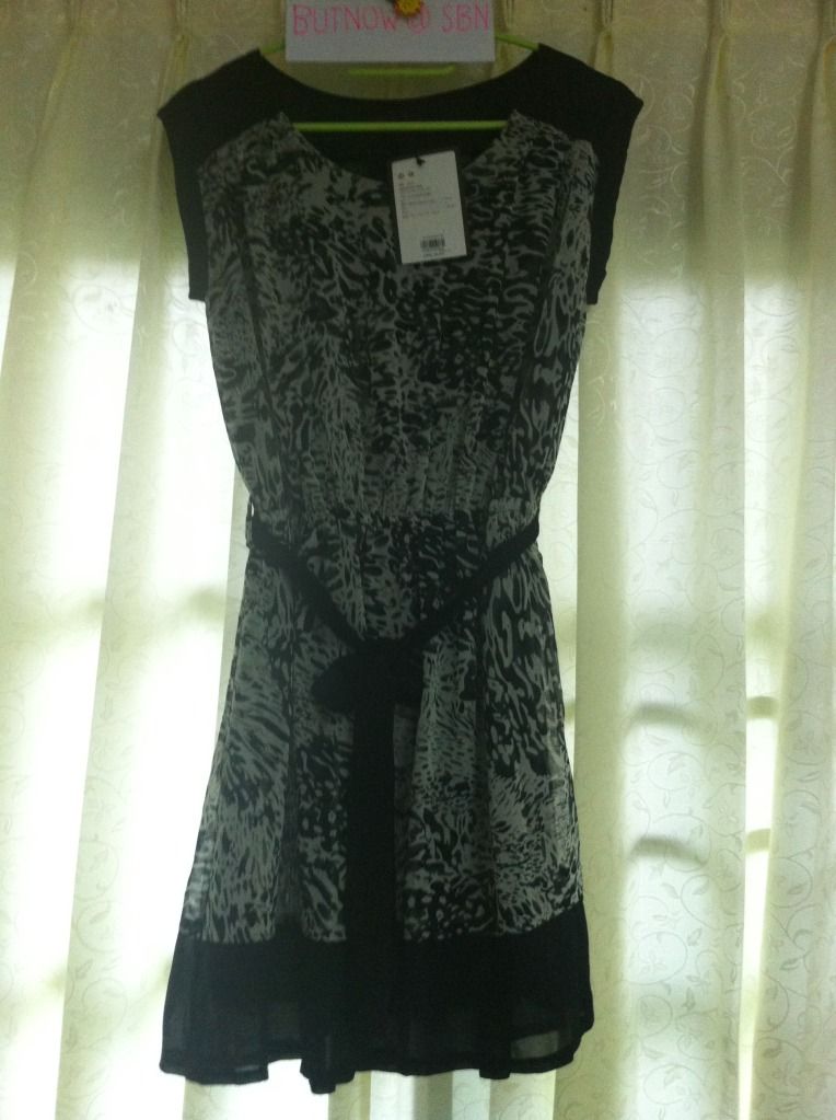 n4 ตัวที่สองเป็นเดรสลายขาวดำผ้าซีฟองมีซับใน ของทริบีก้า ราคาป้าย 1,595 บาท ขายลดไปเลยที่ราคา 690 บาท>>> sale อีกเหลือ 650 บาทค่ะ >> ลดอีกเหลือ 600 บาท