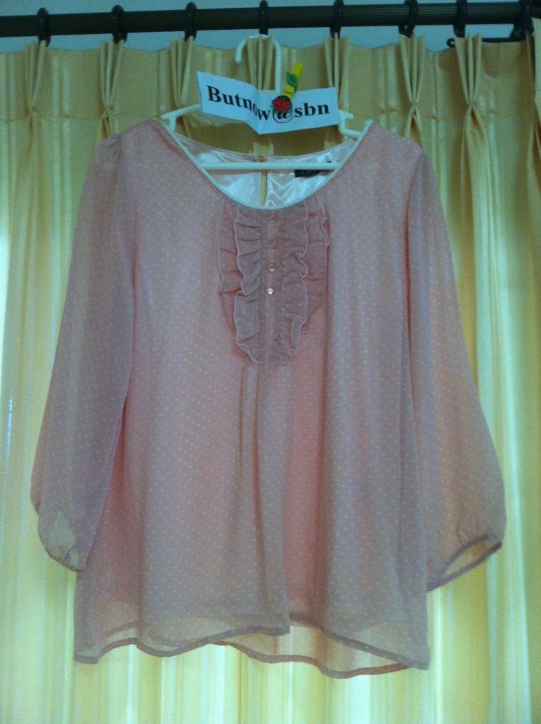 f9.ตัวนี้เป็นผ้าบางๆเนื้อลื่นๆเนื้อดีค่ะ เป็นสีชมพูลายจุดขาวเล็กๆ ออกแนวสาวหวาน แต่ตัวนี้ค่อนข้างใหญ่นะคะ ประมาณอก 34-36 ใส่กำลังสวยค่ะ ซท่อมาให้พี่สาวแต่พี่สาวไม่ชอบ เลยเอามาปล่อยที่ราคา 350 บาทค่ะ ลดก่อนอำลาเพราะขี้เกียจขายแล้วที่ 250 บาท