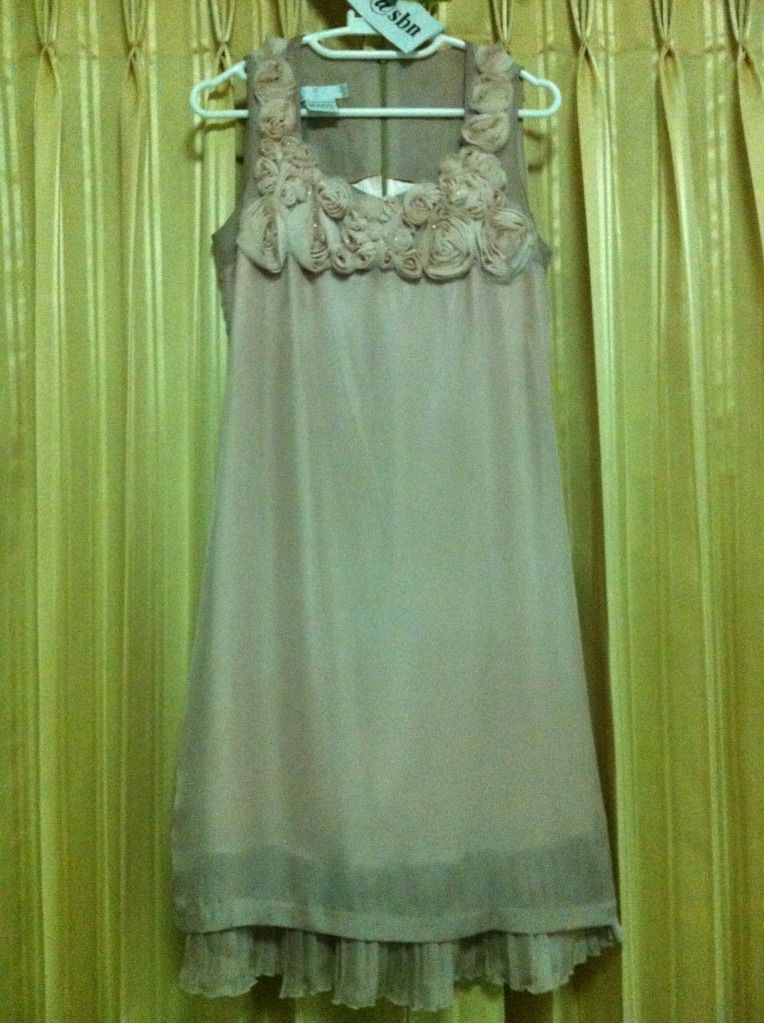 N11 dress ไปงานแต่งงานผ้าซีฟองออกเงาเหมือนไหมเนื้อนิ่มมาก ซับในเป็นไหมซาติน ด้านบนแต่งเป็นดอกกุหลาบมีประกายเพชร ด้านล่างแต่งระบาย มีตำหนิเล็กน้อยตามภาพ สีออกชมพูหม่นๆ ตามรูปค่ะ พี่สาวซื้อมาให้แต่ไม่ได้ใส่ซักกะทีเลยขอเอามาปล่อยต่อ ที่ราคา 650 บาท ตัวนี้ลดได้ที่ 490 บาท