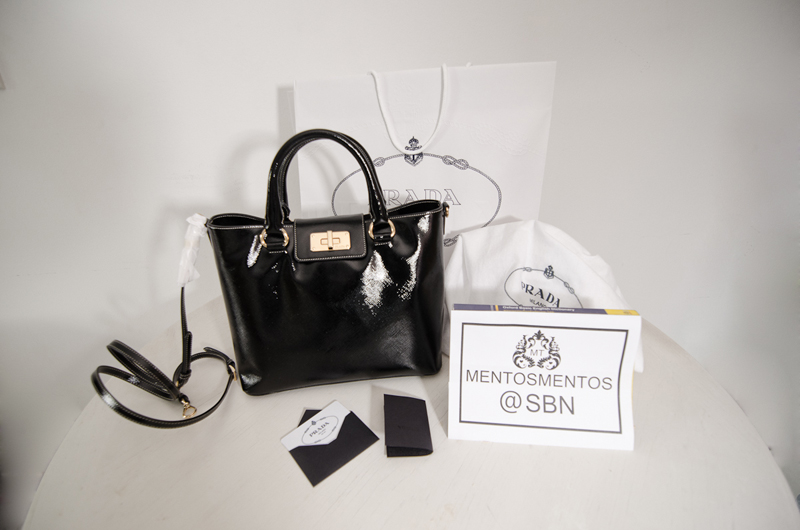 NEW PRADA SAFFIANO VERNIC arancio25 CM สีส้มเงา สีมาใหม่ Color: arancio