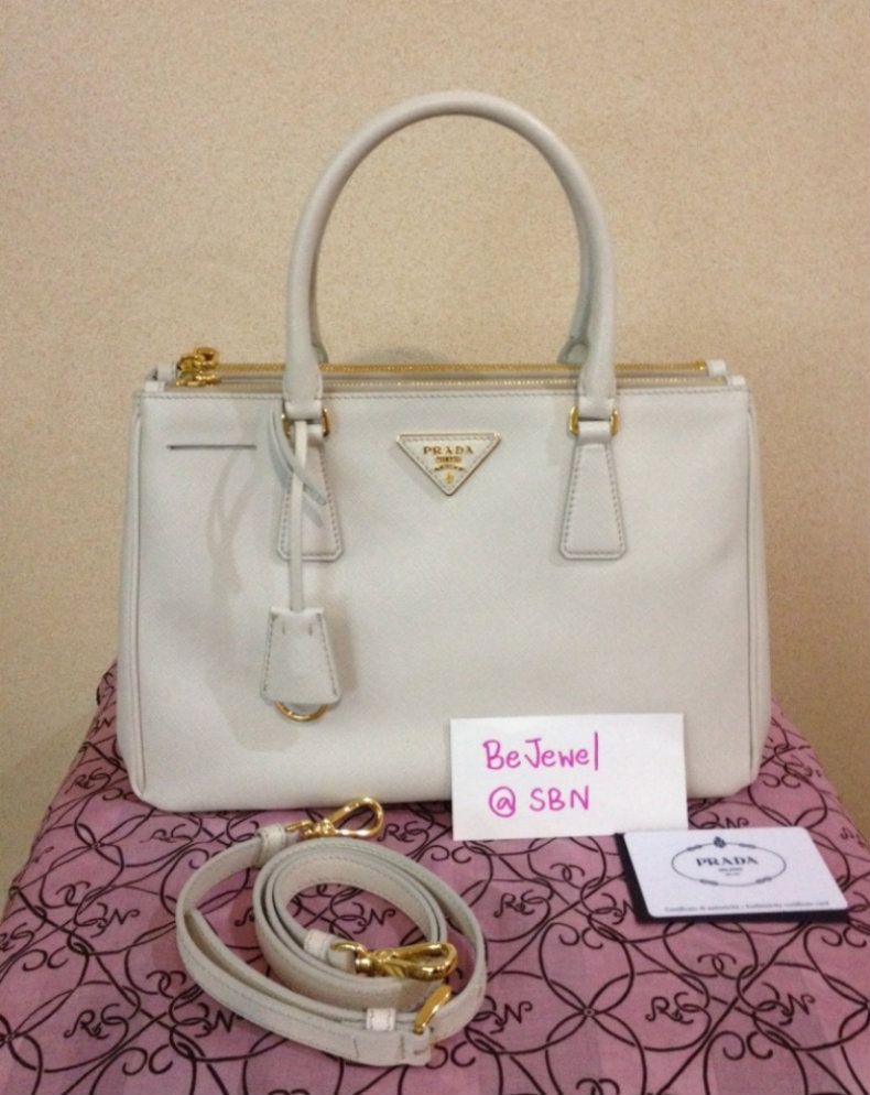 New Prada Saffiano Talco (สีขาวครีม) size30 2 zip with strap