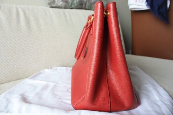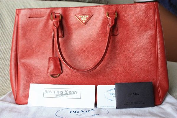 5. Used like new Prada saffiano 35 ไม่มีซิป สีแดง (สีในรูปอาจจะเพี้ยนนะคะ) กระเป๋ามือสองสภาพใหม่ๆ สวยมากๆ ไม่มีตำหนิ อุปกรณ์ มีการ์ดอย่างเดียวค่ะ ราคา 35,000 บาท