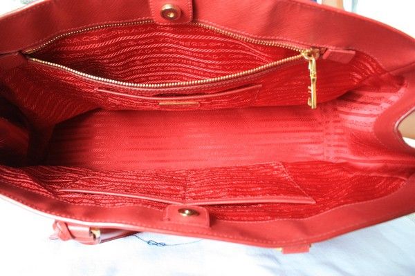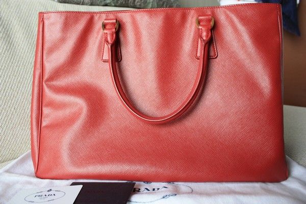 :razz: Used like new Prada Saffiano 25 มีสายสะพาย 2 ซิป สีแดงอมส้ม กระเป๋ามือสองสภาพใหม่ ไม่มีตำหนิ