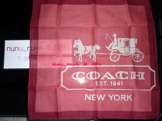 ผ้าเช็ดหน้า COACH ลายรถม้า สีแดงตัดขาว (ไม่มีพัด)