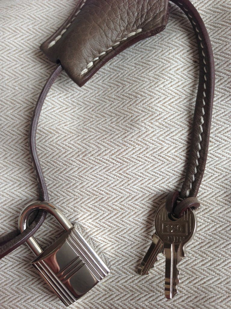 Etoupe Palladium Hardware. With rain protection bag, key and box