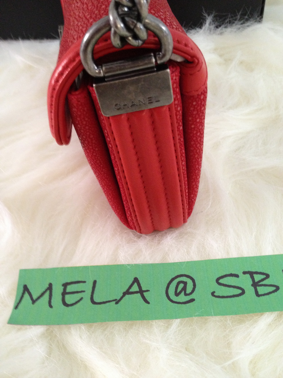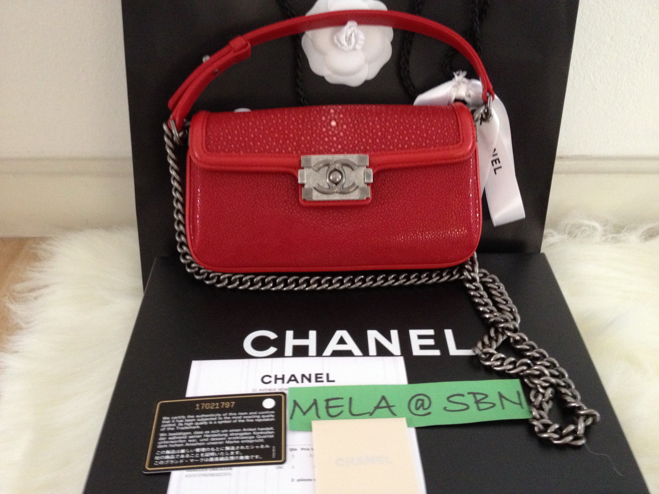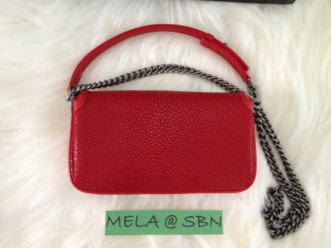NEW กระเป๋า Chanel Stinggray. หนังปลากระเบน 9 นิ้วสวยสุดๆ สี Red Lipค่ะ ราคา 133,000 บาท ถูกสุดๆ ขายพร้อมกล่อง ถุงผ้า ถุงกระดาษ การ์ด ใบเสร็จตัวจริง Hologram17XXXXXX