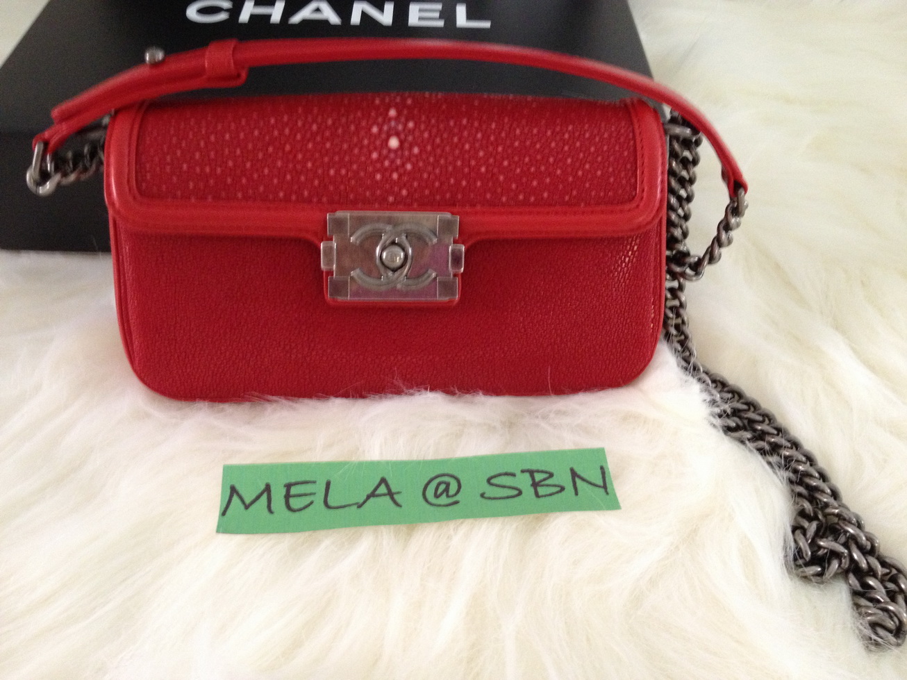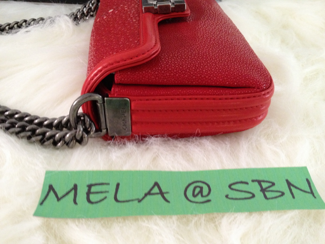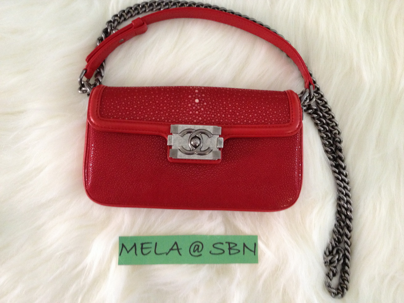 NEW กระเป๋า Chanel Stinggray. หนังปลากระเบน 9 นิ้วสวยสุดๆ สี Red Lipค่ะ ราคา 133,000 บาท ถูกสุดๆ ขายพร้อมกล่อง ถุงผ้า ถุงกระดาษ การ์ด ใบเสร็จตัวจริง Hologram17XXXXXX