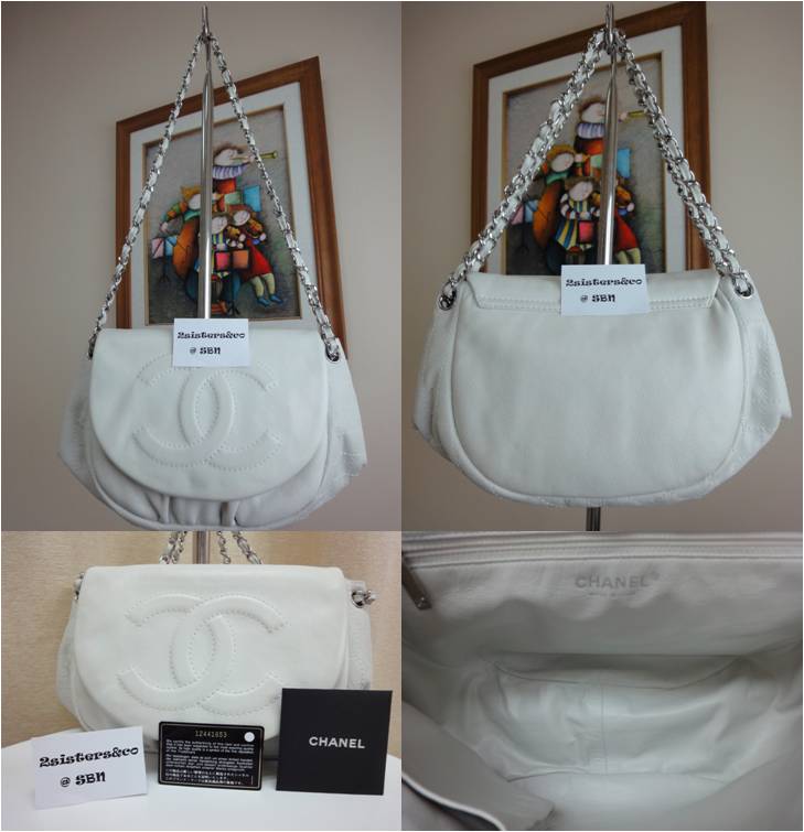 Chanel Large 12" Halfmoon White Soft Carviar SHW ( SIZE JUMBO)