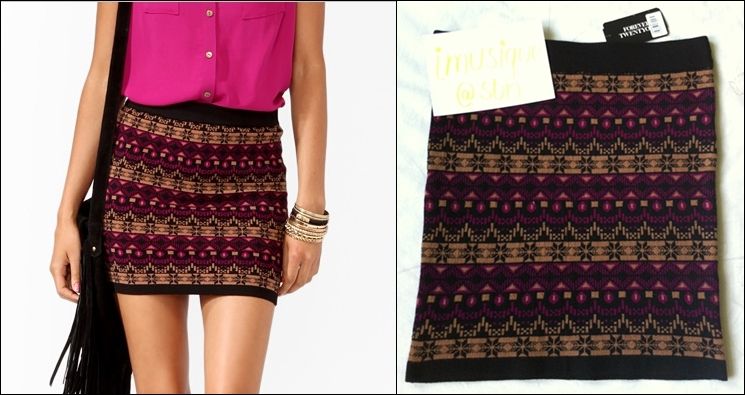 Tribal Printed Bodycon Skirt (Black-Magenta) size S