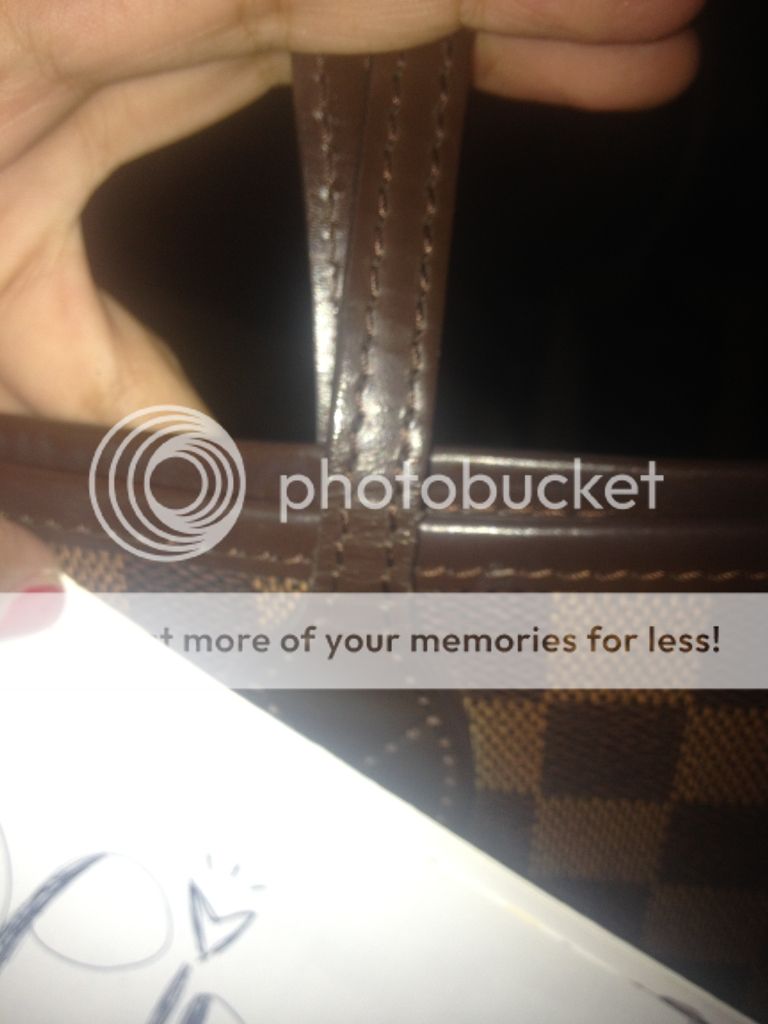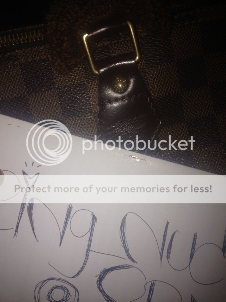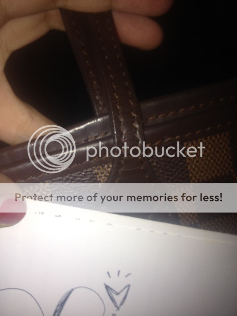 หูกระเป๋ามีรอยเนื่องจากแม่ค้าใส่หูถักตั้งแต่แรก หูเลยมีรอยของลายหูถักค่ะ