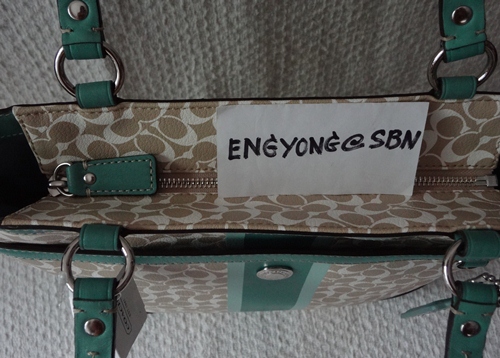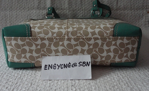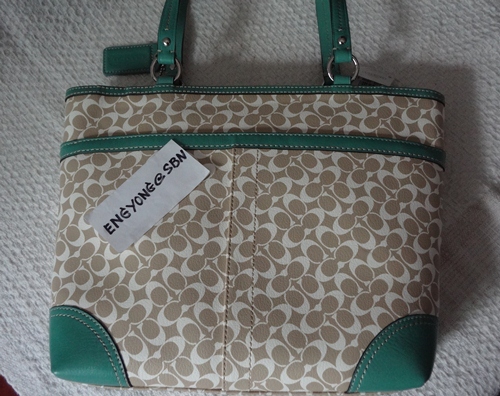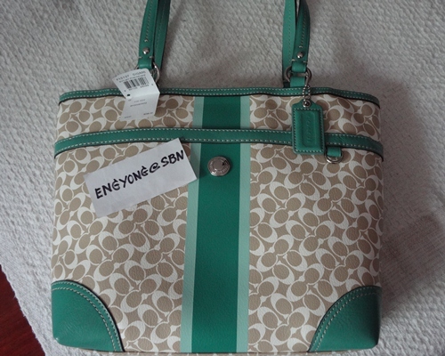 COACH - 15137 CHELSEA HERITAGE STRIPE TOTE สี Khaki/Mineral (กากี/เขียวน้ำทะเล) เป็นของใหม่มือหนึ่งป้ายห้อยคะ ขนาด 13*11*3 นิ้ว รุ่นนี้หายากแล้วคะ ลาย Signature เป็น PVC ขลิบหนัง รักษาง่าย อุปกรณ์มี น้องเป๋า และ Care Card ราคา 5,490 บาท