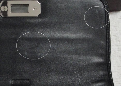 มีรอยจุด และรอยเปลื้อนที่มุมกระเป๋าด้านหลังข้างขวา