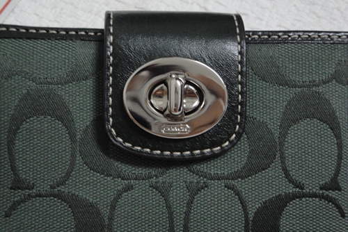 4. COACH - 43612 Turnlock Signature Medium Wallet สี Forest (เขียวเข้ม) ขนาด 5*4 นิ้ว กระเป๋าเงินรุ่นนี้หายากแล้วนะคะ ใส่บัตรเครดิต ได้ 7 ใบ ด้านหลังมีช่องซิปสำหรับใส่เหรียญ เป็นของใหม่ป้ายห้อยคะ อุปกรณ์มี น้องเป๋า / Care Card และกล่อง Coach ราคาพิเศษ 3,190 บาท