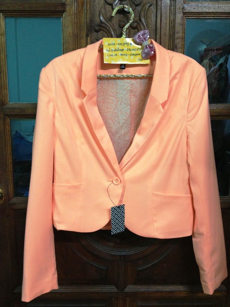 5.New H&M สูทตัวสั้นสีส้ม ไซร์ 42 หรือเทียบเท่าไซร์ L ใส่กับยีนต์หรือกระโปรงสั้น น่ารักหมดเลย ราคาเต็ม 1,400 บาท แอนนี่ไม่ขาย ลดไปเลย ครึ่งราคา เหลือแค่ 700 บาทรวมส่ง รีบคว้ากันไว้เลย