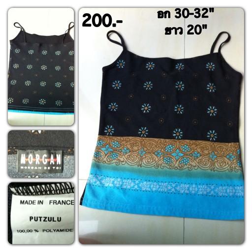 Morgan Free Size เสื้อสายเดี่ยว สีดำ ลายฟ้า สีตัดกันสวยจังคะ