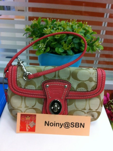 Used Coach wristlet 41941 สี light khaki/papaya สภาพดี สีสวย หายาก ราคา 2,350 บาท