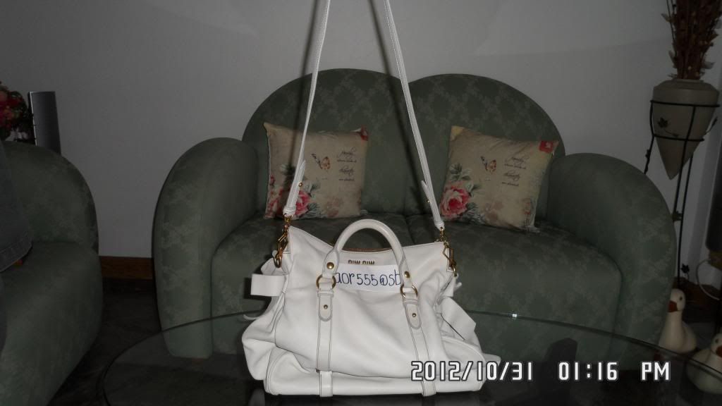 miu miu bow regular รุ่นยอดฮิต สี off white sizeL 14.6",H10.4",D 7.1 " ใบใหญ่มากค่ะ สภาพโดยรวมดีมาก มุมมีรอยบ้างจากการใช้งาน หนังยังสวย มีแต่ตัวกระเป๋านะคะ ราคา22,900 บาทค่ะ