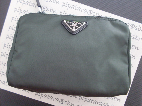 - New Prada Cosmetic สีเขียวขี้ม้า ขนาด 6x4.5x2 นิ้ว ราคา 3,800.-