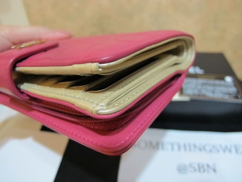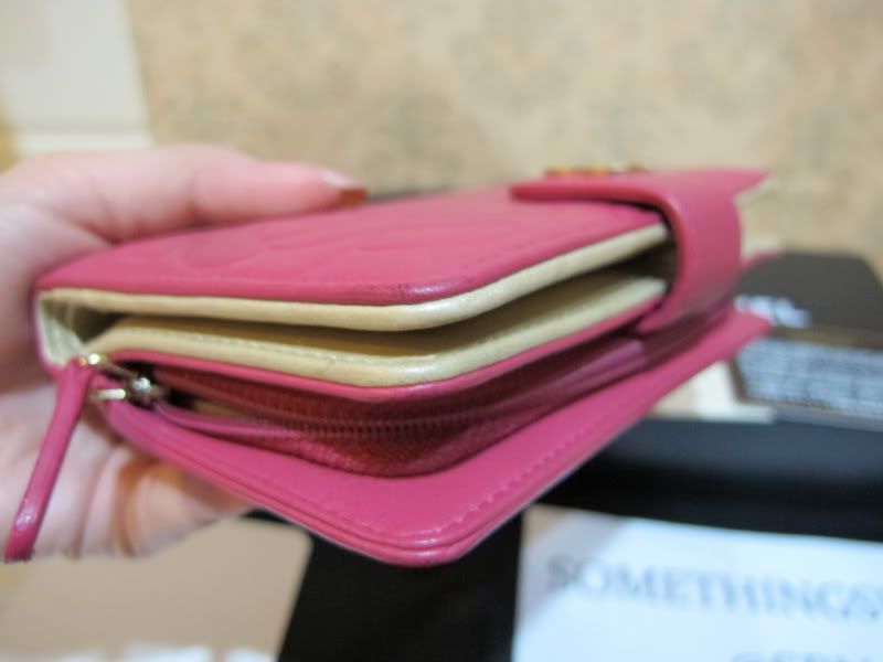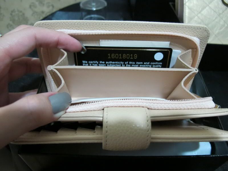 กระเป๋า เงินใบสั้นน่ารักกระทัดรัดค่ะ สีหายากเชียว เป็น TWO-TONE ด้วยค่ะ ฝั่งนึงใส่ธนบัตรและการ์ด อีกฝั่งใส่เหรียญ สีสวยมากและน่ารักมากเลยค่ะ อุปกรณ์มาพร้อมกล่องและริบบิ้นค่ะ