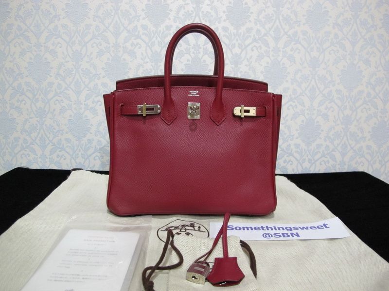 LIKE NEW... HERMES BIRKIN25 RUBY EPSOM PHW"STAMP N"