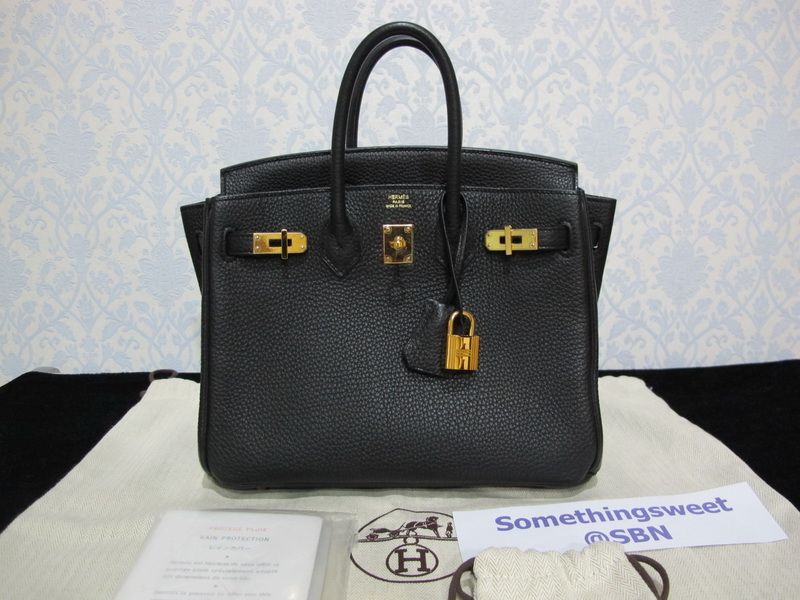 LIKE NEW... HERMES BIRKIN25 BLACK TOGO GHW"STAMP N"