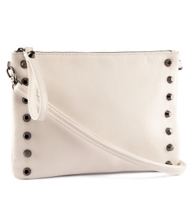 กระเป๋าคลัชหนังปักหมุด มีสายสะพายยาว 20x28cm. 950.- / กระเป๋าคลัชสีครีม 17x28cm. 1,200.-
