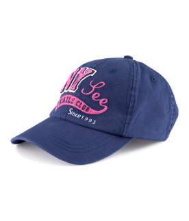 หมวกแก๊ปสีน้ำเงินปักลายชมพู 550.- / หมวกทรงทหารเรือสีน้ำเงินเข้ม 650.-