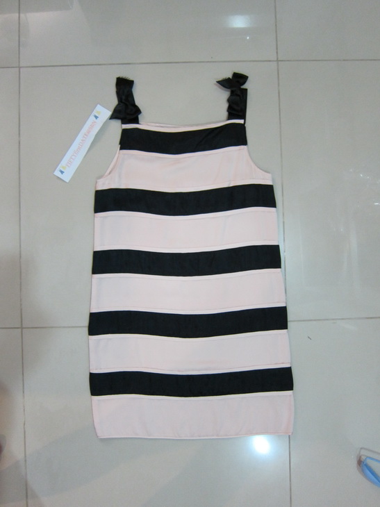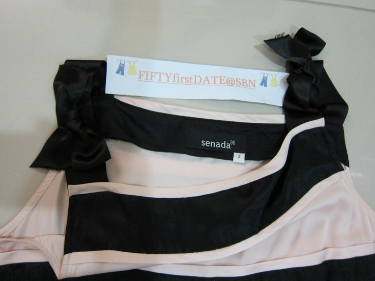 Dress Senada ชมพูลายทางดำ ผ้าซาติน ไหล่แต่งริบบิ้น size s 3350