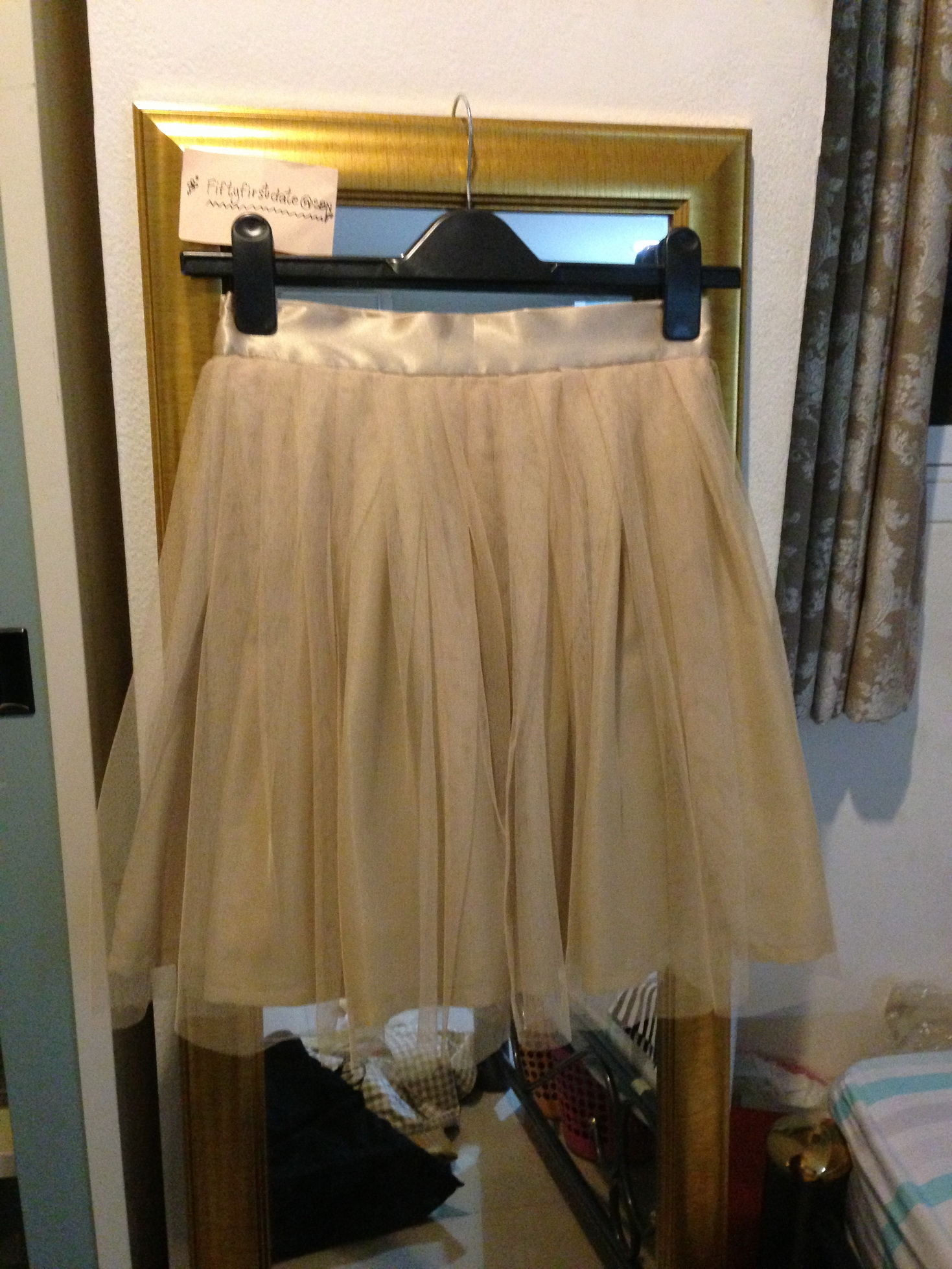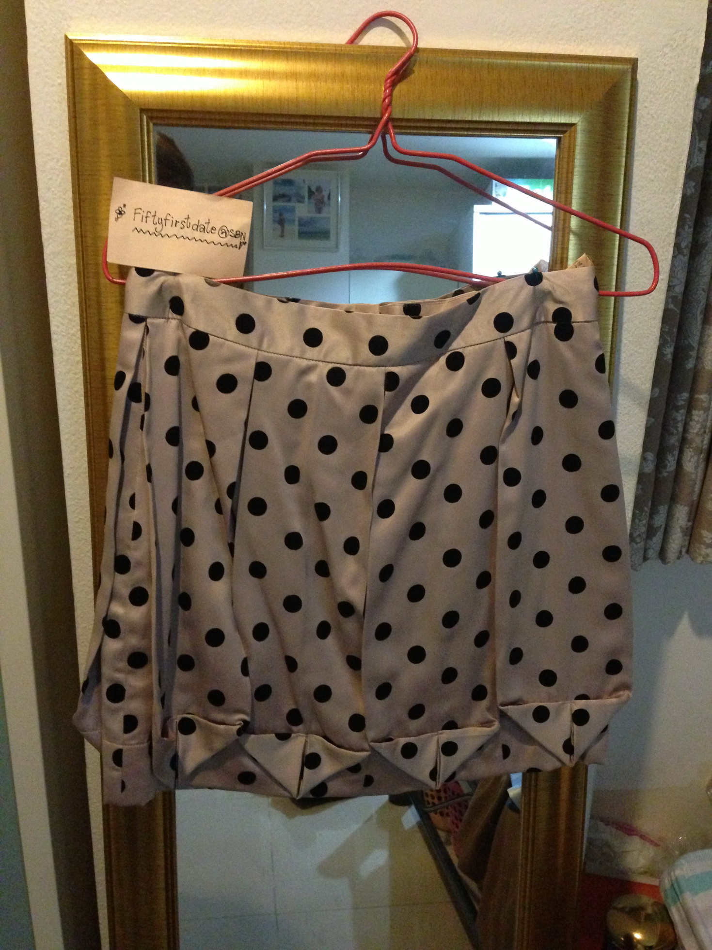 กระโปรงPANICLOSET Sz: S ทรงสุ่ม สีเบจ เอว26-27 ขาย 800