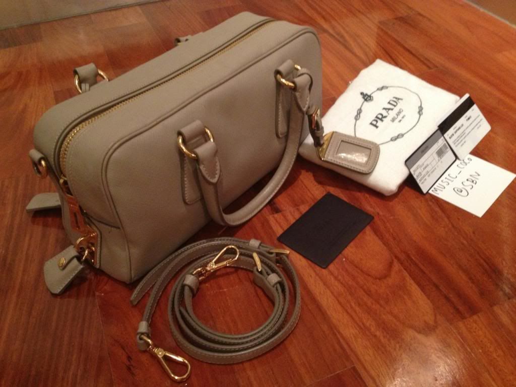4. Prada Saffiano Lux, Pomice: 12"x15"x3.5" ซื้อมาจาก Italy กลางปีที่แล้ว (2012) นะค่ะ หิ้วก้อได้ สะพายก้อเก๋ เป็น used ที่สภาพค่อนข้างดี ให้ 90% ค่ะ แต่จะมีรอยใช้งานตามมุมทั้งสี่เล็กน้อย อุปกรณ์มีcard, strap และถุงผ้า ใน shop ขายอยู่ 4x,xxx ขอขายเพียง 25,000 บาท