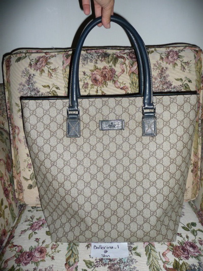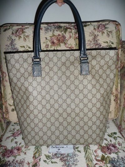 4.Gucci : size : W17.5 xH11.0 xD4.0 inch ทรงเดียวกับ LV Neverfull ใบนี้น่ารักได้lookคุณหนูๆ + ไม่เยอะเท่าNeverfullค่ะ ตัวกระเป๋าเป็นcanvas ลายsignatureกันน้ำมีซิปsaveได้สบายใจอ่ะ ขอบกระเป๋ามีรอยนิดนึงตามรูป มุมก้นโอเคเลยค่ะ มีแต่ตัวน้องเป๋านะคะ ราคา sold ka